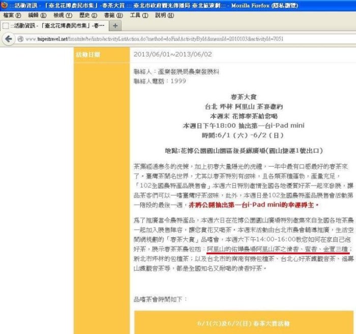 圖5 臺北旅遊網針對週末花博公園春茶大賞進行報導