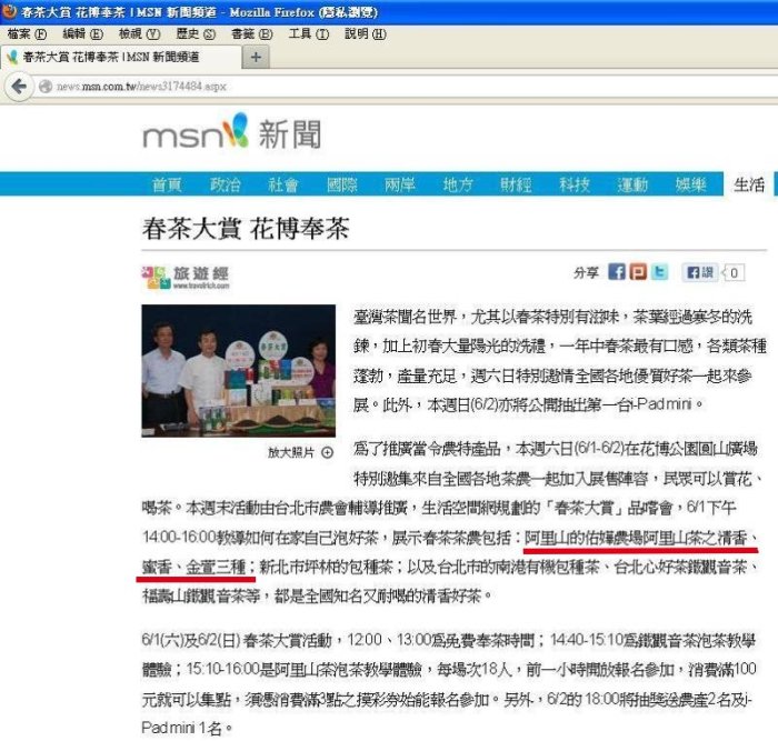圖2 MSN新聞針對週末春茶大賞花博奉茶進行報導
