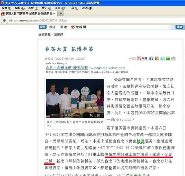 圖4 新浪新聞針對週末春茶大賞花博奉茶進行報導