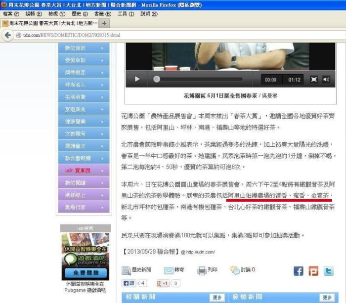 圖1 聯合新聞網針對週末花博公園春茶大賞進行報導